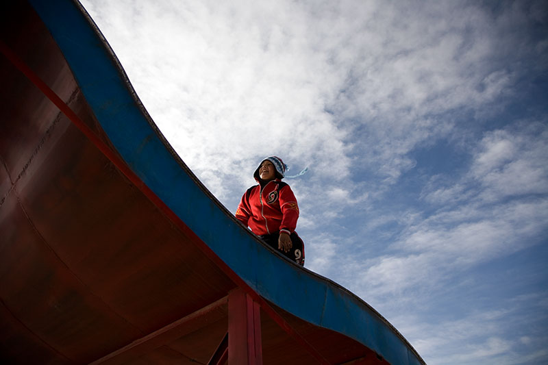 Postanawiamy wdrapać się trochę sami i może poszukać jakiejś małej kopalni, którą moglibyśmy zwiedzić. Szybko wypatrzyły nas dzici sprzedające minerały. Przychodzą, próbują nam sprzedać kolorowe kamyki. Zaprzyjaźniamy się, odnoszą kamyki do domu, i za rękę idzimy w kierunku mniejszego szczytu, na którym wznosi się kaplica i anteny nadawcze. Śpiewamy “Vamos a la playa, comer la papaya”, potem pokazują nam “plażę”, czyli zielonkawy zbiornik jakichś chemikaliów. Pasikonik śpiewa i uczy tańczyć “witajcie w naszej bajce”. Kupujemy butelkę soku. Dzieciaki są niesamowite, cały czas się śmieją, robią niesamowite minki. Zdyszani wchodzimy na mniejszy szczyt. Przygotowujemy lunch – chleb z twarogiem i pomidorem. Dzieciaki znowu nas zadziwiają, przekazują kanapki dalej zanim wezmą dla siebie, nie zaczynają jeść dopóki każdy ma kanapkę. A potem dalsze zabawy, tańczenie dzeicięcego tanga, wyścigi w zbieganiu z górki, podchodzenie na około, żeby nastraszyć. Wieje, dzieciaki chodzą w czapce i szaliku Michała, moim polarze. W sumie spędzamy z dzieciakami chyba ze 3 godziny.